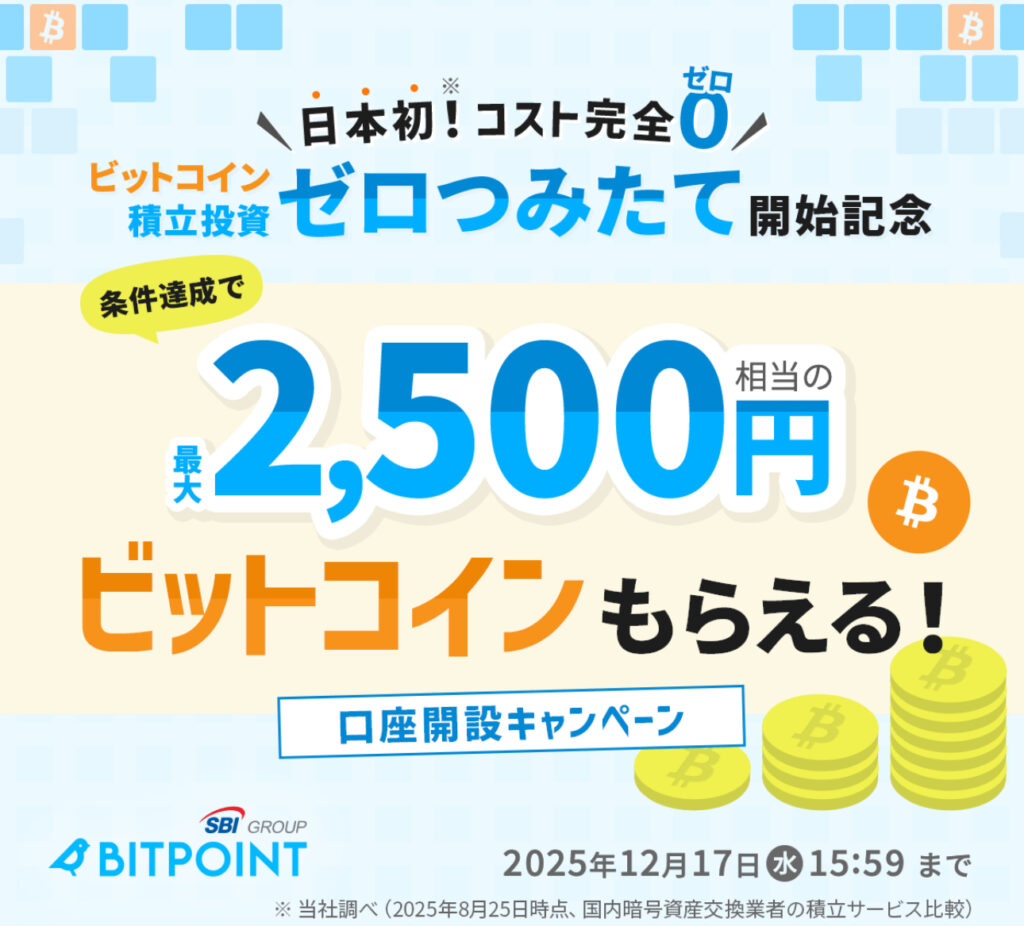 - ゼロつみたて 低コストに暗号資産積み立て可能