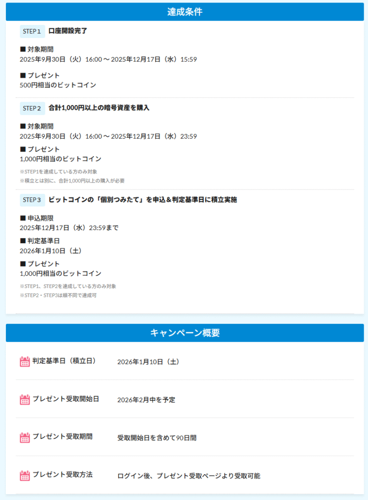 - キャンペーン期間12/17(水)15時59分までに口座開設で500円相当