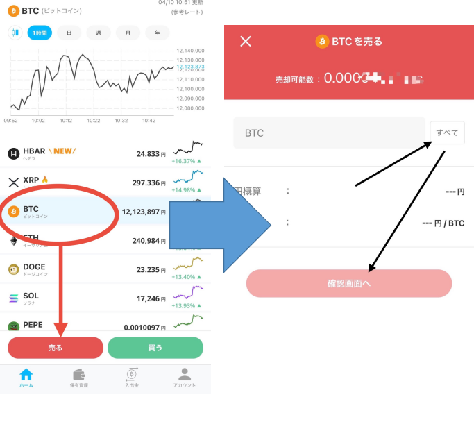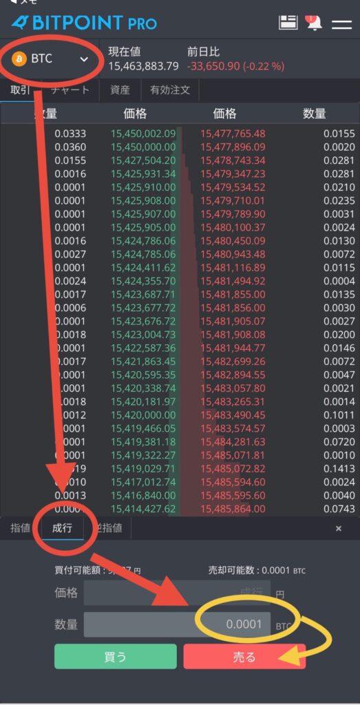 ・手数料が安いブラウザ版のBITPOINT PROで売れるだけ売って、売れない端数はアプリの販売所から売ります