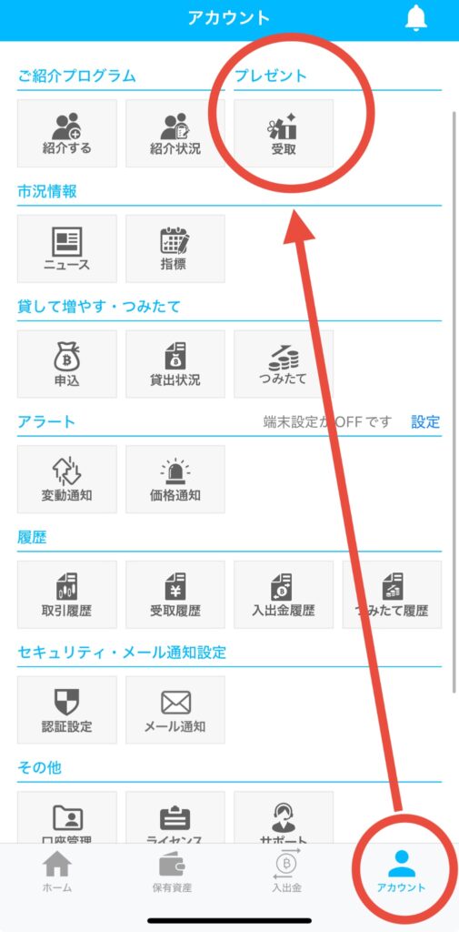 ⑧2月中にBTC2,500円相当付与される→受け取る