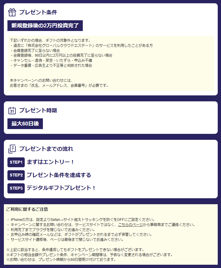 • 他社不動産クラファンを利用済みで、今回初めてCAMELに登録・投資をするユーザーが対象です。