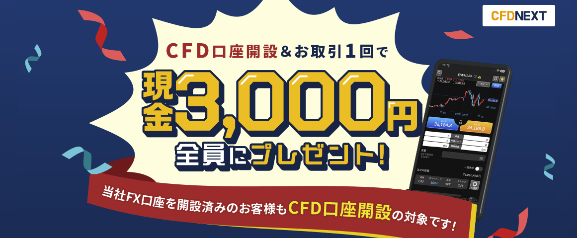 2025年11月、CFD新規キャンペーン開催中です!FX既存の人も参加できるものとなっています。