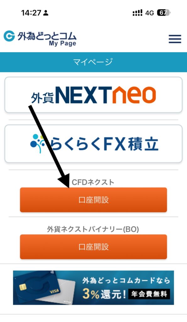 外為のFX口座既存の人はマイページログインしてCFD口座追加