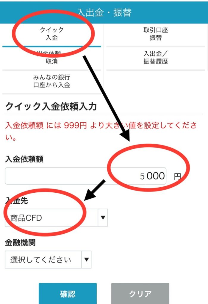 - 5000円を商品CFD口座へ入金