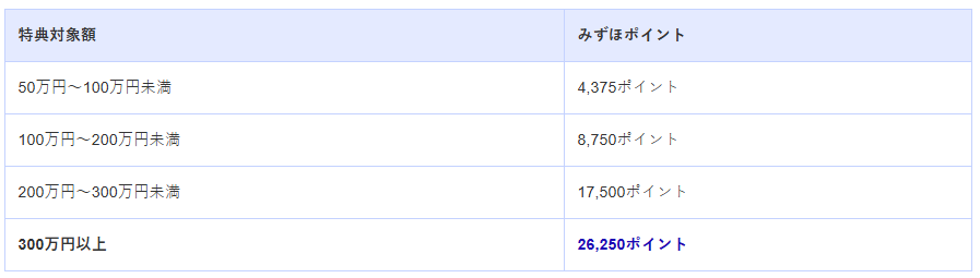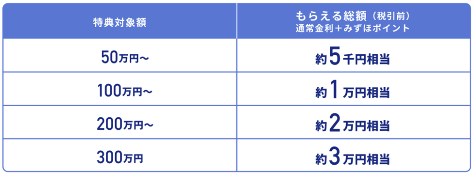 特典は利子とみずほポイント合計で判定残高の1%となっています。