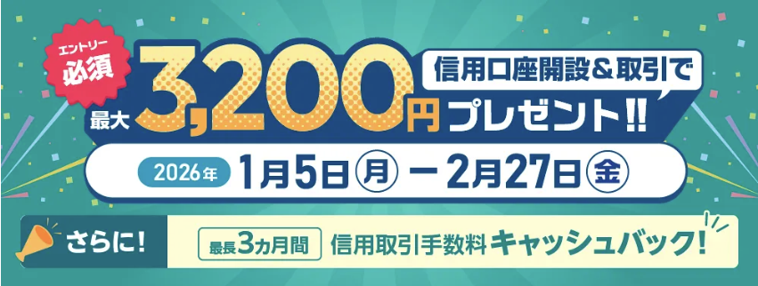 - 信用取引口座開設と取引で3200円