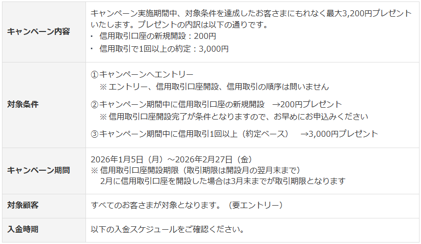 - 2/27までに信用取引口座の新規開設 →200円
