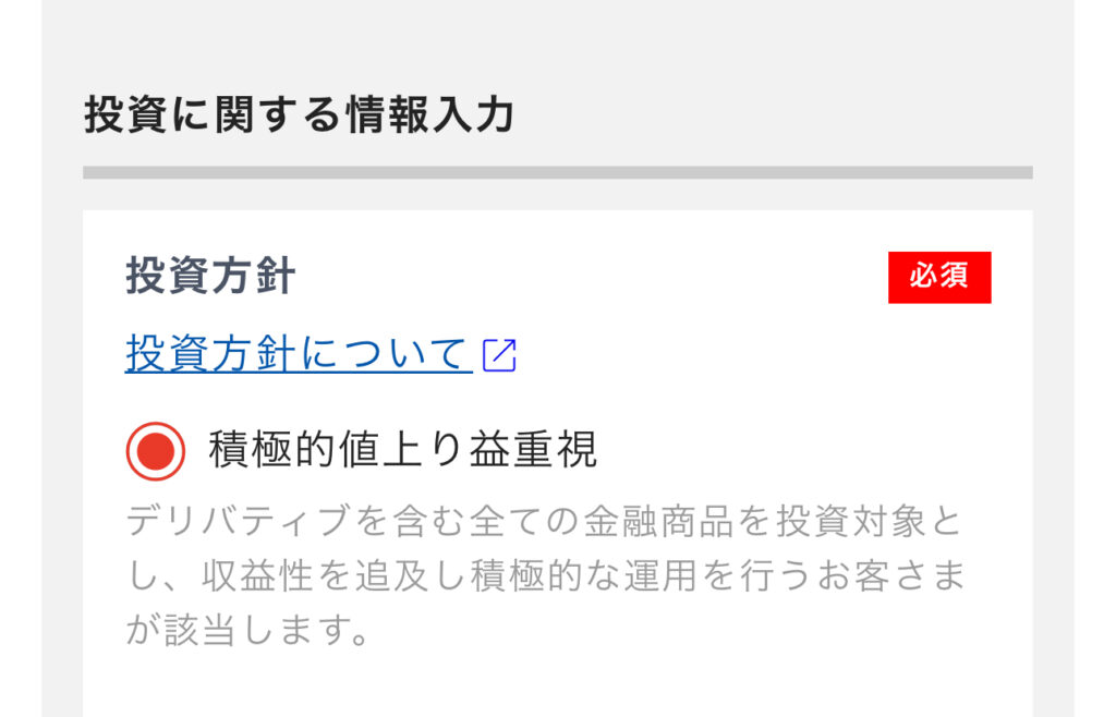 ↓投資方針は積極的にしてみました(審査に関係するかは不明)