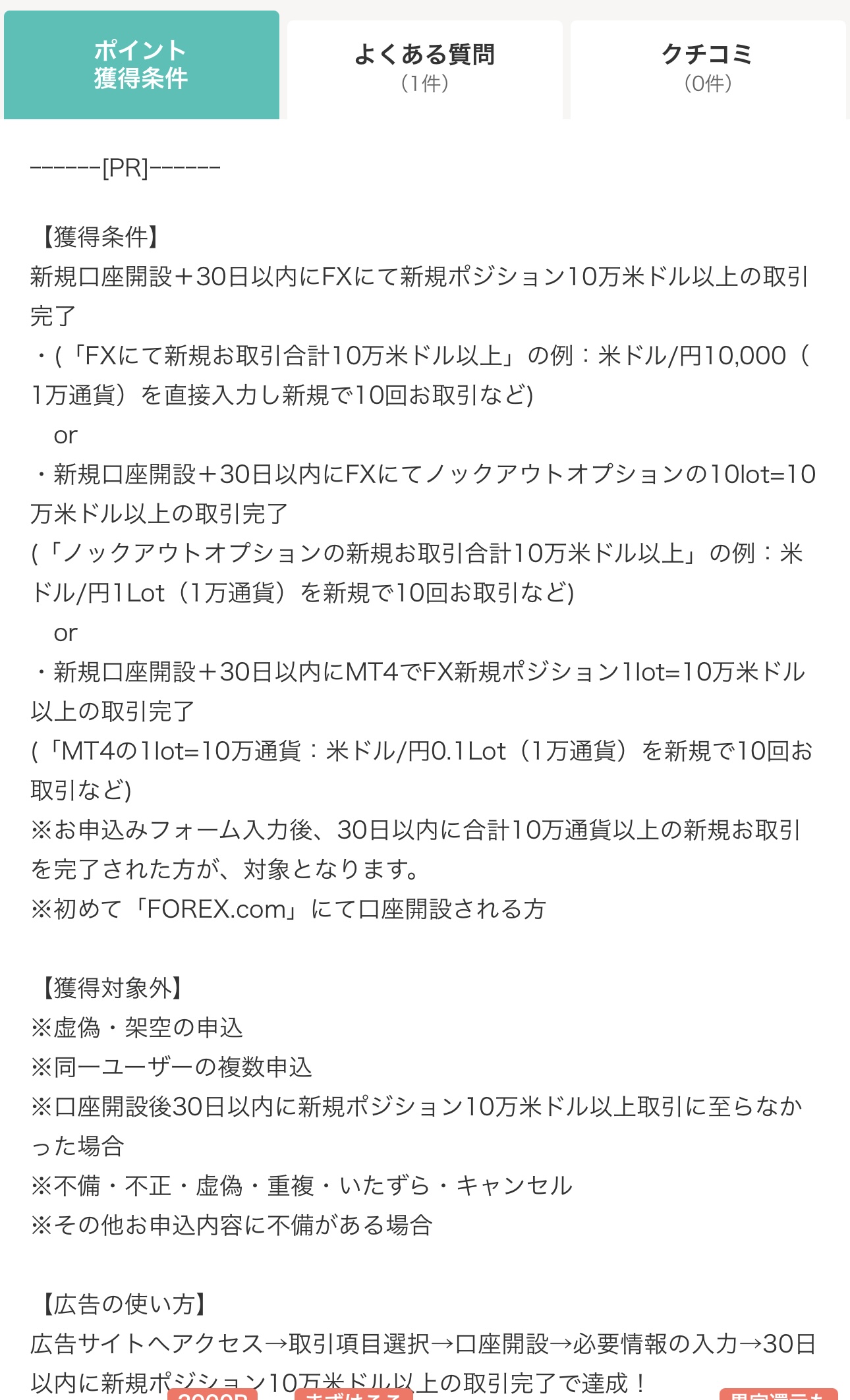 - 申込みから30日以内にFXにて新規10万米ドル以上取引