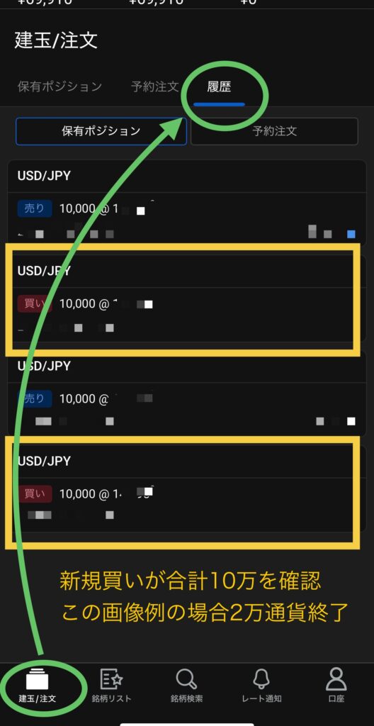 - 新規合計10万通貨を確認 (買い10万、売りも10万、合計20万)